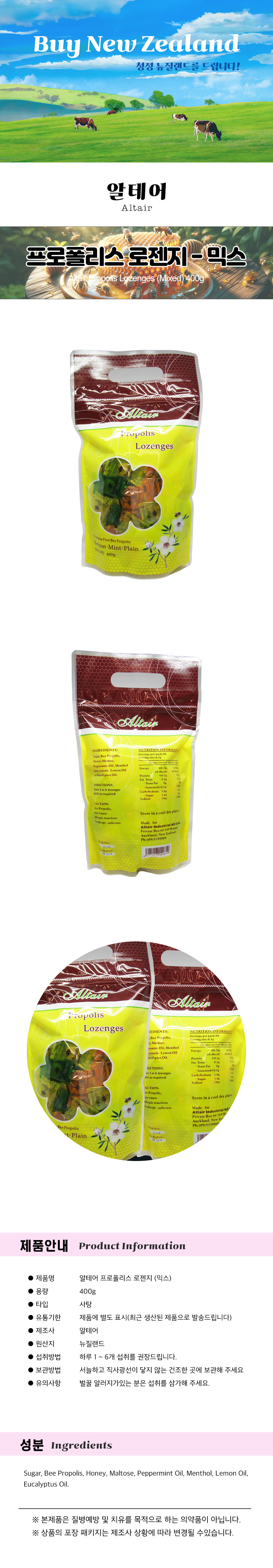 ´ºÁú·£µå ¾ËÅ×¾î ÇÁ·ÎÆú¸®½º ·ÎÁ¨Áö ¹Í½º 400g (·¹¸ó + ¹ÎÆ®)
