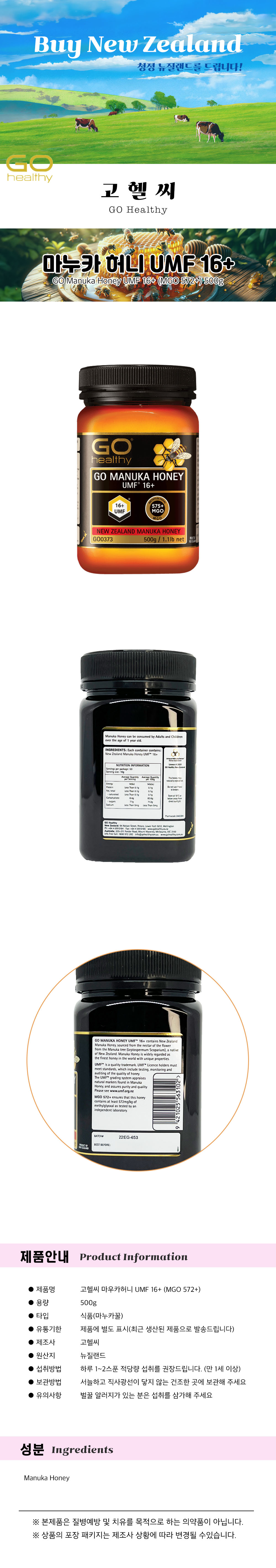 ´ºÁú·£µå °íÇï¾¾ ¸¶´©Ä«Çã´Ï UMF 16+ (MGO 572+) 500g