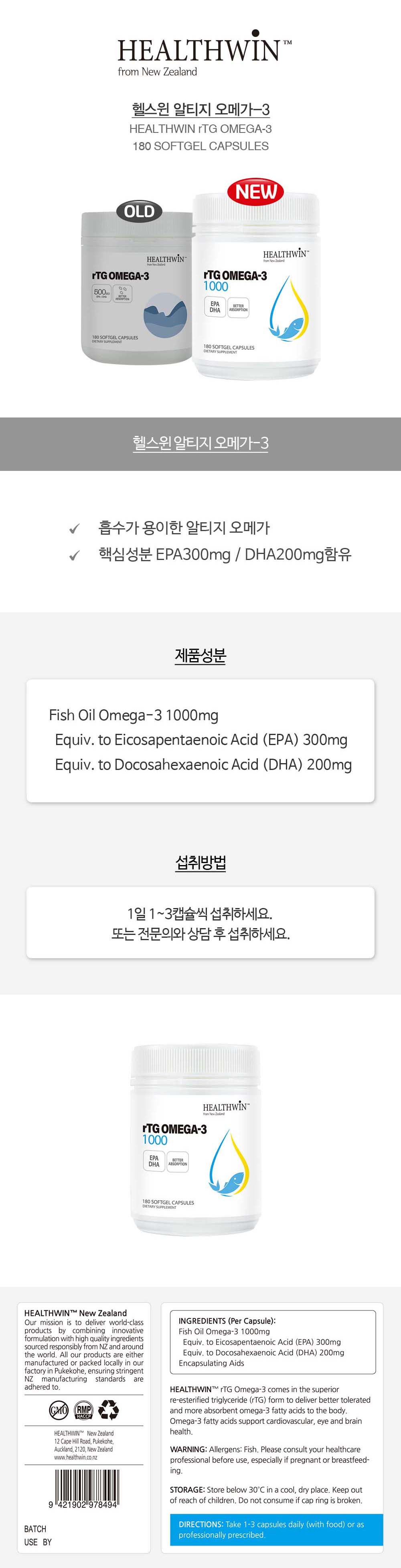 ´ºÁú·£µå ÇコÀ© rTG ¿À¸Þ°¡ 3 1000mg 180 º£Áöĸ½¶