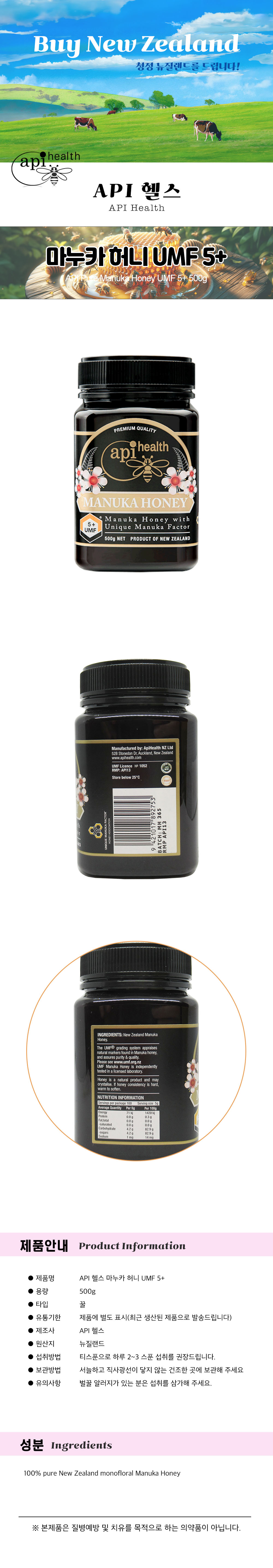 ´ºÁú·£µå API Çコ ¸¶´©Ä« Çã´Ï UMF 5+ 500g