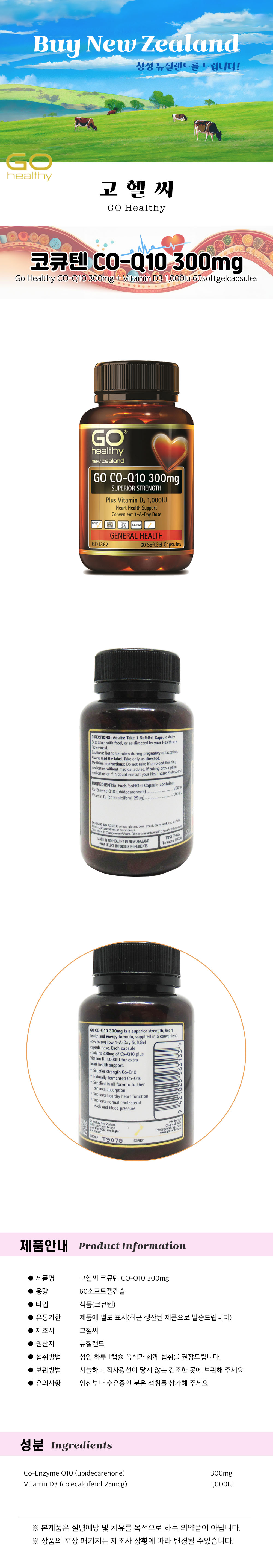 ´ºÁú·£µå °íÇï¾¾ ÄÚÅ¥ÅÙ 300mg + ºñŸ¹Î D3 60 ¼ÒÇÁÆ®Á©Ä¸½¶