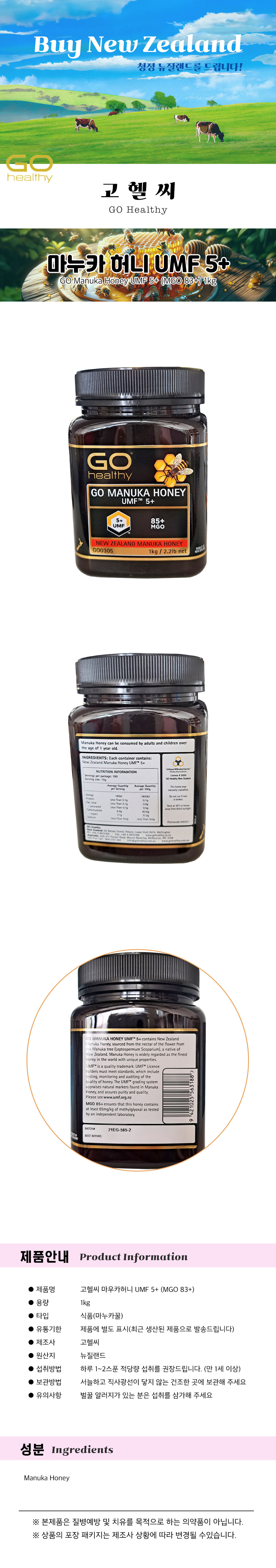 ´ºÁú·£µå °íÇï¾¾ ¸¶´©Ä«Çã´Ï UMF 5+ (MGO 83+) 1kg