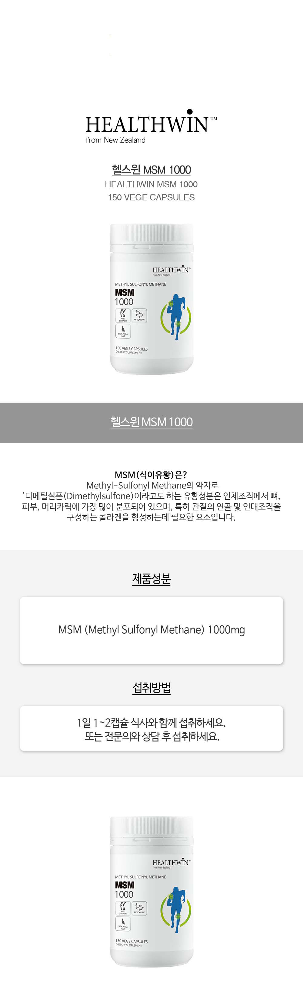 (5Åë) ´ºÁú·£µå ÇコÀ© MSM ½ÄÀÌÀ¯È² 1000mg 150 ĸ½¶