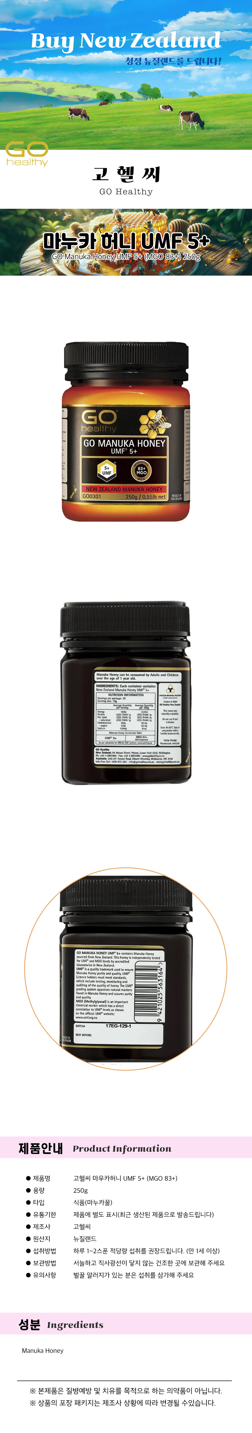 ´ºÁú·£µå °íÇï¾¾ ¸¶´©Ä«Çã´Ï UMF 5+ (MGO 83+) 250g