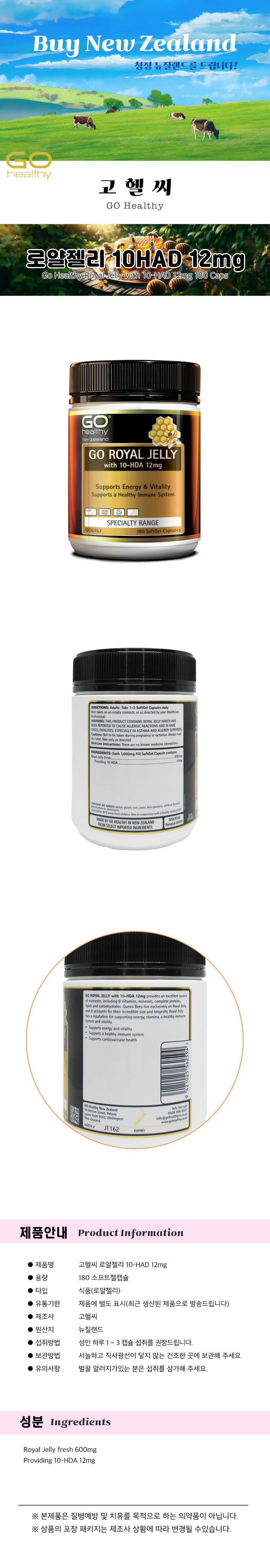 ´ºÁú·£µå °íÇï¾¾ ·Î¾âÁ©¸® 10-HDA 12mg 180 ¼ÒÇÁÆ®Á©Ä¸½¶
